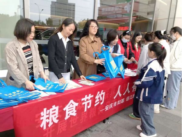 2025年10月16日是第45个世界粮食日,安庆市妇联紧扣“手拉手共倡多样美食,聚合力同创美好未来”这一主题,结合全国粮食安全宣传周“粮食节约,人人有责”的倡议,组织开展了一场形式多样、内容丰富、贴近群众的宣传教育活动。市妇联党组成员、副主席杭向阳、市总工会党组成员、副主席赵新、市政协妇联界别和工会界别部分委员及迎江区政协、迎江区妇联相关负责人参加此次活动。