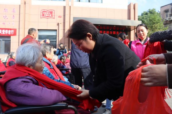 活动现场暖意融融,徐舒媛、金秋明等慰问人员为在场每一位老年人送上保暖围巾与爱心点心,一句句“节日快乐”“保重身体”的亲切问候,让老人们脸上洋溢着幸福笑容。同时,市女企协党支部书记、副会长刘国庆,市女企协副会长张丽娜,迎江区女企协会长查赛琴,宜秀区女企协会长孔云霞,大观区女企协会长黄莉萍等率队贴心的送上了米、油、奶和慰问金。