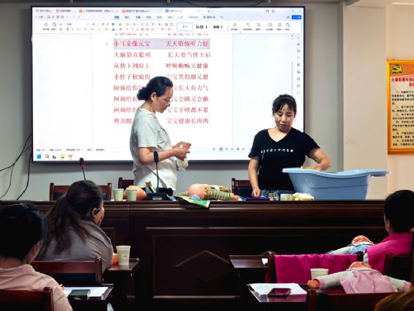 为拓宽妇女就业渠道,提升妇女职业技能水平,6月30日,由宜秀区妇联主办,大桥街道妇联、安庆邻鹿养老院联合承办的“巾帼家政进社区”育婴师培训班在叶祠社区正式开班。本次培训吸引了辖区30余名妇女群众参与,为其搭建了家门口的技能提升平台。