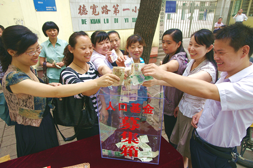6月11日中国人口日来临之际,安庆市大观区德宽路街道蜡树园社区与6月8日开展人口基金募集活动,宣传动员全社会都来关心和重视人口可持续发展问题。根据安排,本次筹集所得的全部基金主要用于计划生育困难家庭慰问、独生子女家庭子女的成长助学、计划生育家庭特困难救助和母亲健康等项目。