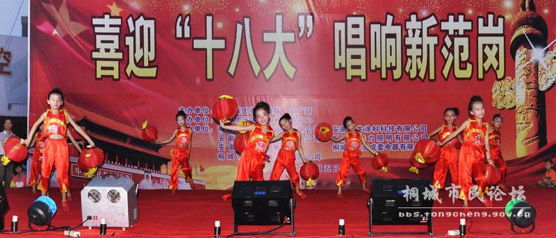 为深入贯彻党的十七届六中全会精神,全面落实科学发展观,着力推进文化强镇的建设步伐,7月5日,桐城市范岗镇妇联联合团委、文广站、市皖江琴行范岗艺术培训中心,在桐城市范岗镇人民广场隆重举行“喜迎十八大•唱响新范岗”文艺演出。