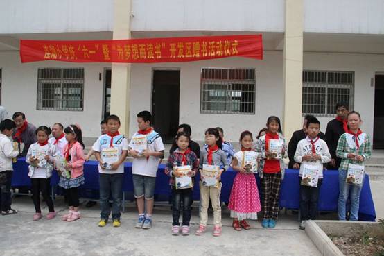 5月31日上午,枞阳县经济开发区新旗小学、连湖小学内花团锦簇,彩旗飘扬,洋溢着美好的节日气氛。县经济开发区、县妇联、县教育局等单位领导分别到学校与师生一起隆重庆祝“六﹒一”国际儿童节。分别向两所小学每位学生捐赠了价值五十元的图书,作为“六﹒一”儿童节的礼物。这次捐赠图书总价值两万元,为孩子们开启了“为梦想而读书”的阅读之门。孩子们拿着图书,带着梦想,尽情欢笑,度过了一个属于自己的快乐节日。(县开发区妇联)