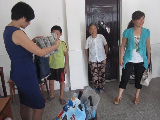 7月26日,安庆市红枫商贸有限公司董事长陶枫携女儿等人一行来到雷池乡沟口村看望了贫困孤儿张文亮同学,并为张文亮同学送上了服装、学习用品和现金。