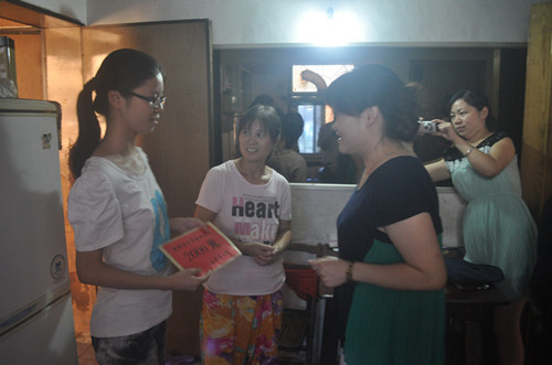 8月20日,市妇联副主席华文红冒着酷暑,深入到大观区华茂社居委社区、龙山街道社区看望慰问贫困单亲低保户家庭女大学新生夏亚男和叶品荷,并为她们每人送上了2000元慰问金。华主席对她们顺利考上大学表示祝贺,与她们亲切交谈,并详细询问了她们的学习和生活情况,鼓励她们今后要继续努力学习,努力成才,今后对社会多作贡献,以报答社会各界对他们的关爱。夏亚男和叶品荷两位同学对市妇联的关爱表示感谢,表示一定不辜负妇联组织的殷切希望,努力学习本领,将来回报社会。