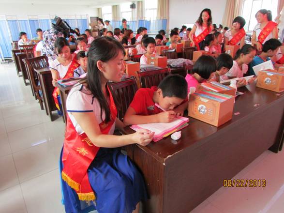 紧接着开展了志愿者教育辅导活动。由女教师组成的志愿者们为留守儿童检查辅导暑假作业,帮助孩子们树立起学习目标、成长目标和特长目标。并留下联系方式,嘱咐孩子们今后遇到学习问题可以联系她们。