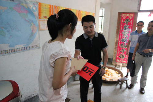 新学年开学前夕,爱心人士——刘克胜、徐爱兰赶到桐城孔城镇清水塘村汤凤明的家中,向她考取大学与桐中的一双儿女表示祝贺,递上慰问金,并表示“一对一资助两学子读完大学与高中”。