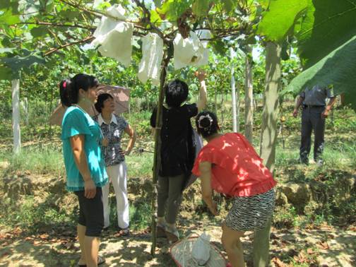 义津镇高升村是枞阳县“美好乡村”建设示范村,也是2013年安徽省妇女创业扶持专项资金项目——“美丽家园行动”项目申报点。该项目主要用于支持农村妇女参与美好乡村建设,申报成功后将获得省级补助5万元。调研组一行实地考察了高升村优质葡萄养殖加工一体化基地,详细询问了基地目前的发展状况及市场前景,听取了该村关于妇女群众参与美好乡村建设的详细介绍。重点就妇女创业就业工作、精神文明创建工作、参与村庄环境整治、开展“低碳家庭行动”等项目实施内容提出了具体要求。同时指出,美好乡村建设为广大妇女提供了广阔的舞台,妇联作为党联系妇女群众的桥梁和纽带, 要充分发挥职能作用。要求通过多渠道的有力措施,加大宣传力度,动员广大妇女为建设生态宜居村庄美、兴业富民生活美、文明和谐乡风美的“美好乡村”做贡献。
