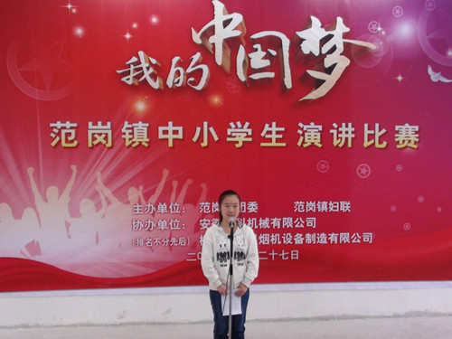 9月27日上午,由桐城市范岗镇妇联组织策划,安徽中科机械有限公司、桐城市华星烟机设备有限公司大力赞助的中小学生“我的中国梦”演讲比赛在范岗初中隆重举办。来自全镇13所中、小学校的参赛者经过紧张的角逐,最终由东升小学的陆妍同学以优异的表现获得比赛第一名。