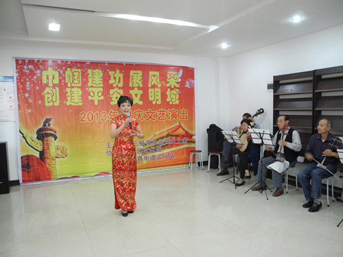 2013年9月30日下午,金秋送爽,丹桂飘香,由大观区三祖寺社区妇女之家举办的“巾帼建功展风采、创建平安文明城”文艺演出活动走进广大社区群众,以喜闻乐见的形式深化群众对平安家庭创建的意识,提高妇女群众知法、学法、懂法、用法的水平,增强依法维护自身合法权益的能力。在社区演出大厅内,演出活动历时一个半小时,表演内容包括歌唱、舞蹈、黄梅戏、京剧等10余个项目,演员们的表演精彩纷呈,博得观众阵阵掌声。演出活动中,巾帼维权志愿者还现场发放500册平安家庭手册,为妇女群众讲解家庭安全知识,巾帼法律志愿者的资深法律顾问们也为群众答疑解惑,使广大妇女群众在欣赏文艺演出的同时,学到了法律知识,掌握了家庭安全常识。