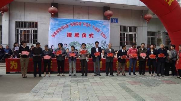 枞阳县枞阳镇新华社区举行“低碳家庭”示范户、“六星级”文明户授牌仪式