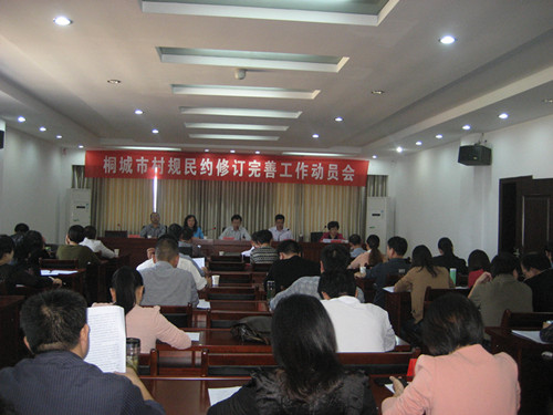 市妇联主席王胜利作桐城市以维护农村妇女权益为重点的村规民约修订完善工作动员报告,王胜利在报告中说:由于桐城市正全力争创省级文明城市,会议稍微推迟,好在前期准备工作已做好,这次会议既是动员会也是推进会,大家对照《桐城市以维护农村妇女权益为重点的村规民约修订完善工作实施方案》认真贯彻落实好,在修订完善村规民约时,要注意三点:一是突出“三个重点”,二是遵守“三个原则”,三是严把“四道关口”。