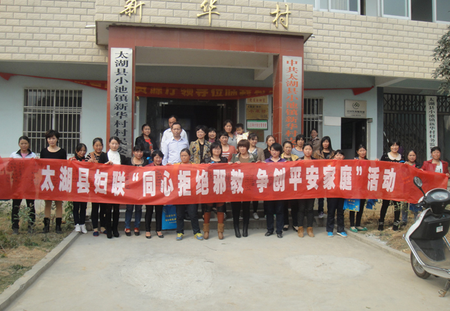 此次活动是县妇联开展“防邪知识进家庭”活动的一部分,为进一步增强妇女儿童崇尚科学、反对邪教思想意识,在广大农村妇女和家庭中形成远离邪教、拒绝邪教的浓厚氛围,县妇联从2013年9月至2014年2月,在全县组织开展“防邪知识进家庭”活动。活动共分为四个部分:反对邪教宣传讲座、发放防邪宣传资料、签订家庭防邪承诺卡、千名妇女防邪签名。 新华村首批100余名妇女群众参与了此次活动。