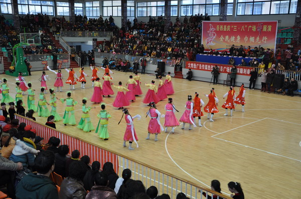 为进一步推动全县全民健身活动的深入开展,鼓励广大妇女积极参加体育锻炼,提高身体素质,倡导健康、文明的生活方式,践行党的群众路线,服务更多的妇女群众,为她们提供展现风采的舞台,近日,岳西县妇联举办“全民健身 巾帼先行”广场舞文艺展演。县领导程谦、方国安、王德红、刘永林及县妇联、文广新局、岳西中学等单位负责同志和1500余名群众到场观看。