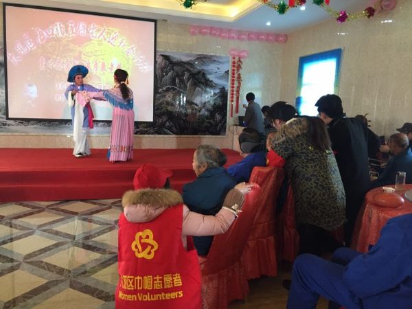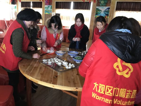 1月9日,大观区海口镇党委政府组织镇妇联、团委等部门,组织巾帼志愿者和青年志愿者在海口镇吉园山庄开展了“海口镇五保老人迎新春活动”暨“爱心团圆饭,浓厚敬老情”慰问活动,为五保户送戏剧、送饺子、送温暖。