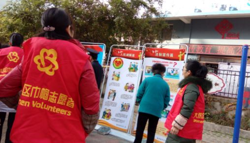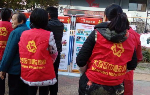 2月6日,大观区腊树园社区巾帼志愿者利用春节期间走亲访友的契机在社区志愿广场举行了“春节法制宣传月”活动。