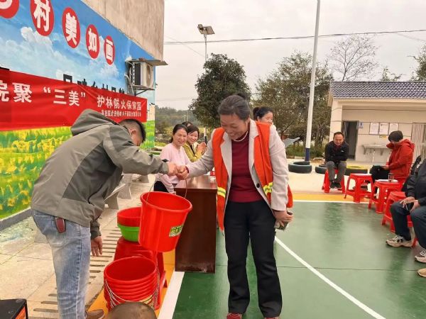 现场还穿插了美丽庭院与森林防火知识有奖问答环节,发放了奖品、宣传品,在场村民们踊跃参与,气氛热烈。