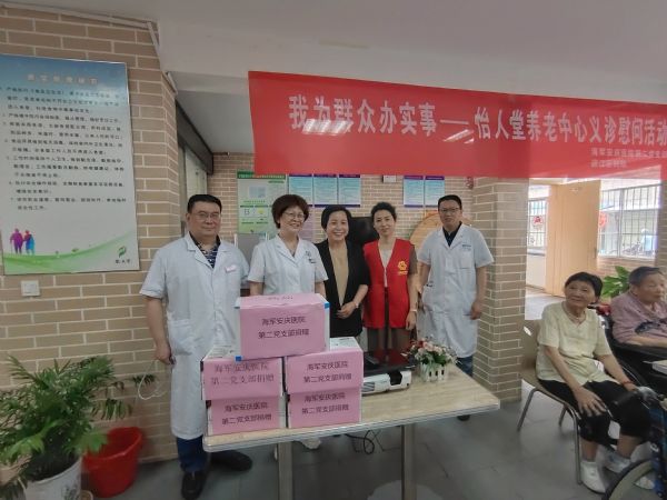 6月7日,在传统端午节来临前夕,迎江区妇联联合海军安庆医院第二党支部走进怡人堂养老中心开展“我为群众办实事”义诊慰问关怀活动。